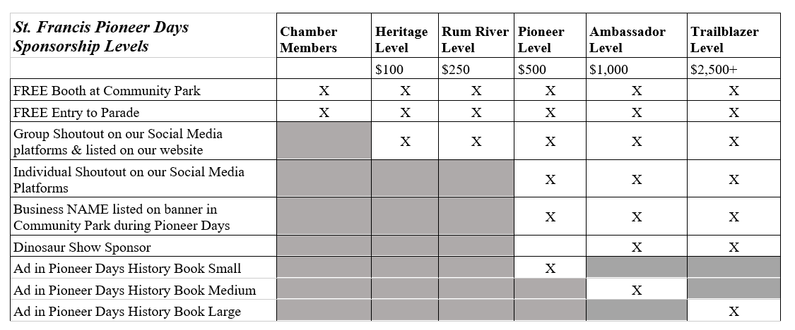 Please send any questions about Pioneer Days sponsorship to chamber@stfrancischamber.org